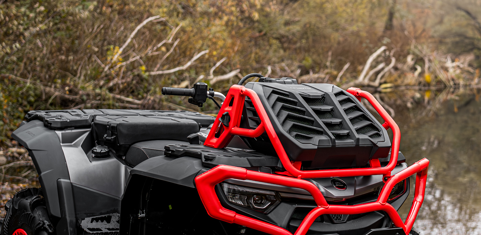 На цій моделі радіатор має нове, вище розташування й передню решітку інноваційної конструкції з можливістю регулювання кута нахилу в трьох положеннях для оптимального охолодження. Квадроцикл оснащений бризковиком, який швидко знімається й легко миється, а також допомагає двигуну зберігати оптимальну температуру навіть в умовах роботи під великим навантаженням.