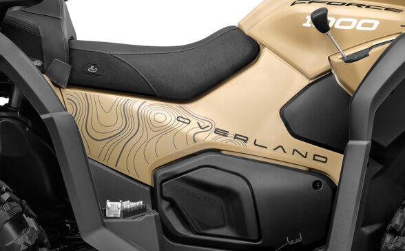 Збирайтеся і вирушайте в путь! Абсолютно новий CFORCE 1000 OVERLAND про все подбав. Свобода досліджувати простори тепер також є і свободою брати все необхідне з собою. Достатньо місця і для багажу, і для пасажира. Це означає, що ви можете сміливо виїхати з міста на півдня, день або навіть на всі вихідні разом із усім необхідним для комфорту і зручності у великій подорожі. Завдяки потужному двигуну CFORCE 1000 OVERLAND та спеціально розробленому захисту для їзди в умовах бездоріжжя ви можете зосередитись на пригодах, що чекають попереду, кинути виклик собі та насолодитися свободою.
