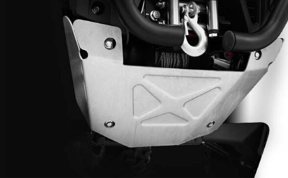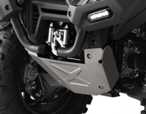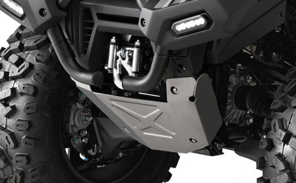 Міцні протиударні пластини на всю довжину днища слугують захистом CFORCE 1000 OVERLAND від небезпек, які можуть зустрічатися під час руху по бездоріжжю. Виготовлений із поліетилену високої щільності (ПВЩ) товщиною 8 мм, цей захист днища, що складається з передньої, центральної, задньої та бокових протиударних пластин, допомагає захистити транспортний засіб від пошкоджень і дозволяє проїздити по камінню, пнях та будь-яких інших перешкодах, що можуть траплятися на вашому шляху.