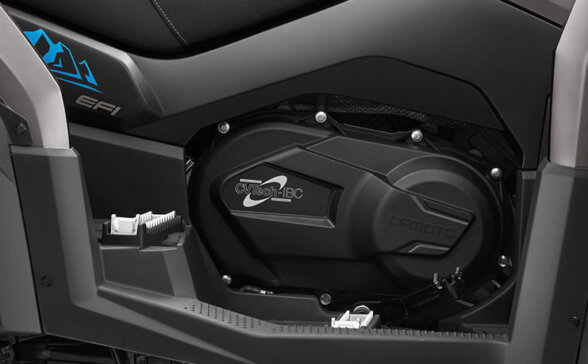 CFORCE 1000 OVERLAND оснащений 75-сильним V-подібним двигуном об’ємом 963 куб. см., який являє собою ідеальне поєднання надійності й високих робочих характеристик на трасі. 8-клапанний двигун з рідинним охолодженням оснащений електронною системою синхронного впорскування пального BOSCH, що забезпечує чітку і стабільну потужність у всьому діапазоні обертів і дозволяє розвивати крутний момент у 79 Нм, здатний справитися з пригодами будь-якого масштабу на будь-якій висоті.
