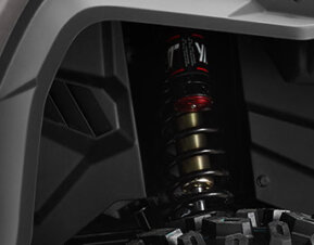 Передня підвіска на двійних A-подібних важелях і задня підвіска на поздовжніх важелях забезпечують надійне зчеплення шин з поверхнею і плавність ходу навіть на найскладнішій місцевості. Повністю регульовані комбіновані амортизатори дозволяють налаштувати поїздку для виконання будь-якої роботи або для прогулянки, запланованих на день. Відрегулюйте підвіску для перевезення легшого вантажу або для розміщення на квадроциклі набитих речами дорожніх кофрів та пасажира. Універсальність CFORCE 1000 OVERLAND дає можливість упоратися з усім цим.