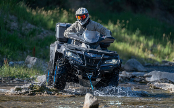 Збирайтеся і вирушайте в путь! Абсолютно новий CFORCE 1000 OVERLAND про все подбав. Свобода досліджувати простори тепер також є і свободою брати все необхідне з собою. Достатньо місця і для багажу, і для пасажира. Це означає, що ви можете сміливо виїхати з міста на пів дня, день або навіть на всі вихідні разом із усім необхідним для комфорту і зручності у великій подорожі. Завдяки потужному двигуну CFORCE 1000 OVERLAND та спеціально розробленому захисту для їзди в умовах бездоріжжя ви можете зосередитись на пригодах, що чекають попереду, кинути виклик собі та насолодитися свободою.