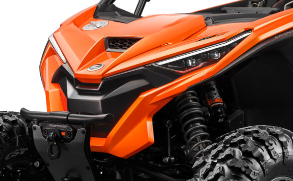 Дизайн, у якому смілива палітра кольорів поєднується з яскравими компонентами, може похвалитися ексклюзивними передніми дверцятами, витонченою алюмінієвою кришкою паливного баку, міцними алюмінієвими захисними кожухами лебідки та інноваційним дизайном колісних дисків. Передня решітка радіатора в стилі сімейства ZFORCE разом з унікальними фарами і новим міцним бічним бампером довершують мужній і виразний зовнішній вигляд цієї моделі.