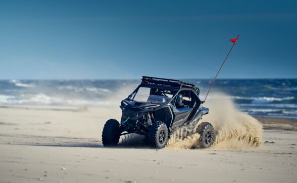 Трициліндровий двигун з турбонаддувом об’ємом 998 куб.см розвиває потужність у 143 к.с. і крутний момент 136 Н/м. Мотовсюдихід має три режими їзди.